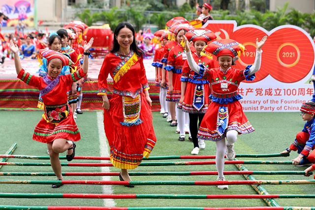 ![]() (本网讯)春色融融三月三,又是壮乡欢歌时。为了庆祝中国共产党成立100周年,感恩党、听党话、跟党走,培养有民族文化自信的社会主义建设者和接班人,4月12日下午,南宁市百花岭路小学以壮族三月三为契机开展了“唱支山歌给党听,壮乡童音颂党恩”的主题活动。 三月的歌随风飘扬,三月的歌悠远绵长。山歌和舞蹈,是壮乡人民生活中不可或缺的一部分,竹竿舞是“三月三”一项非常有趣的民俗活动。看,孩子们身穿民族服装正欢快地跳起来。与此同时,抛绣球、三人板鞋也如火如荼的进行中。 “红星红旗迎风飘扬,胜利歌声多么响亮……”“没有共产党就没有新中国……”活动现场,各年级组成一个个方阵进行红歌对唱,你方唱罢,我方登场,好不热闹。 整场活动精彩纷呈,高潮迭起:一支又一支红歌,一次又一次的呐喊,一阵又一阵掌声、呼声,不断把活动推向高潮。一首首动听的歌谣,同学们精神饱满,歌声嘹亮,在今天大放光彩。 ![]() “唱支山歌给党听,我把党来比母亲……",随着《唱支山歌给党听》的歌声响起,学校的32名党员教师身着艳丽的民族服装欢聚一场,党员教师们用快闪的方式演绎歌舞,致敬伟大的祖国母亲。在场的师生被这浓郁的氛围所感染,纷纷敞开歌喉,一同给党唱支歌。 通过本次活动,不仅让学生了解广西这个大“家”的传统民族文化,增长见识,而且激发了孩子们对传统民族文化的兴趣及对祖国、家乡的热爱之情,同时也增强了孩子们的民族自信心,促进校园民族间团结和谐发展,争做新时代少年,为建党百年献礼。(南宁市百花岭路小学 卓丽丽) |