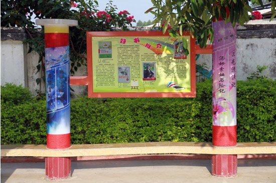 在二小的校园里,随处都能感受到读书氛围。走进校门即可看到一幅巨大的屏风,屏风正面是学校简介、校歌、校训、办学目标等,背面是“读书破万卷,下笔如有神”的主题版块。在错落有致的植物花卉中,有三处师生们经常读书的好场所——书香苑、读书廊、文化墙。这是二小近两年来重点打造的集学习、休息为一体的校园景观。书香苑常年青藤缠绕,花儿飘香,一张张小长凳坐落于绿叶红花间,亭柱子镶嵌着宣传板,宣传家乡特色文化,例如以武鸣县壮乡特色,制作了“我爱家乡”为主题的系列内容,开辟“壮乡名人”“壮乡民俗民风”“壮乡饮食”等,图文并茂,让师生闲暇时间欣赏阅读。25米长的“文化墙”巧妙利用校园布局,墙面内容以结合国学传统文化教育传播“读书明理”为主题,墙角一排排古朴的凳子是学生们的最爱,整个建筑古色古香,衬托出中国文化的博大精深。“读书廊”由7根彩色圆柱子、造型多变夸张的长凳连架而成,柱子上有经典书籍及书目的简介,指引学生课外阅读的方向。 为了让每一名师生都成为读书人,二小加大读书阵地建设力度。设立图书室、阅览室,每一年都投入一定经费用于购买中外名著、儿童读物、教育类、工具类等书籍,不断充实学校图书室的藏书。此外,每一间教室和办公室都添置了书柜,成立开放式图书角,方便师生们课余时间进行随手阅读。 教学楼每楼层的楼梯、各班教室前走廊上方布置宣传板块近200块,列举一些读书名言、名人读书小故事、经典诗词等。每个年级按照学生年龄段的特点,都有独特的书香文化主题,如低年级体现趣味、童真,中、高年级体现理想、励志。班级宣传板块内容全部是由学生设计,班级书香文化各具特色,有班级“全家福”、班名、班风、班训、学期读书目标和“读书之星”的评比等内容,还张贴优秀的“读书心得”和“好书推介”。 二小充分利用了校园的可用空间,精巧布局,学校 “每一面墙壁都说话,每一处都是读书好去处”,不断满足师生良好读书环境的需要。如今,二小景点书香文化、楼层书香文化、班级书香文化各具特色,校园内绿树成荫,花儿锦簇,每步皆景,体现了“一墙一角皆文化,一草一树蕴教育”的书香校园文化建设理念,全校师生在健康、优美的良好文化氛围和幽雅环境中,感受读书的乐趣,心境自然得到了升华。