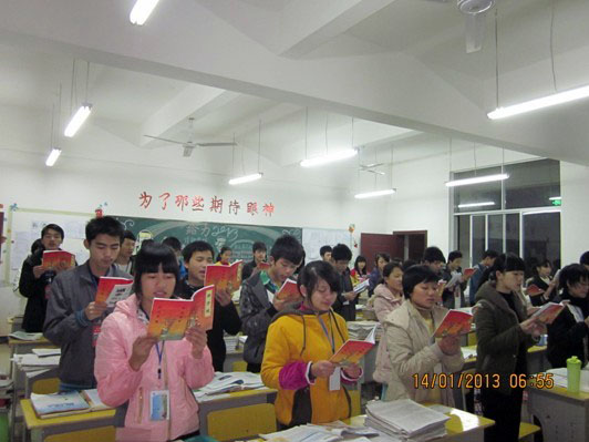 清晨,北流市实验中学(以下简称实验中学)里传来一阵阵清脆悠扬的读书声,走近一听,他们不是在朗读课文,而是在诵读《弟子规》。这所2012年9月份才建成并开始招生的新学校,把《弟子规》作为教材之一,开展学校德育工作。“很多家长反映,通过《弟子规》的学习教育,孩子比以前懂事多了。在学校,我们也感受到,学生们的文明礼仪与刚入学的时候有了很大的变化。”