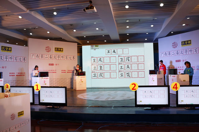 据了解,自今年3月启动以来,广西14个地级市的各中学经过激烈角逐,18个学校代表队脱颖而出,获得初赛出线资格,其中每队选手6名,领队和指导老师各1名。该大赛采用复赛、半决赛和决赛三级赛制,以分组比赛、积分赛、个人赛和加分赛等形式进行,比赛内容主要为识汉字写拼音、汉字词语听写、汉语成语听写、经典诗词名句词语听写和看图写词语等。发起该比赛,意在弘扬汉字,传承中华优秀文化,针对信息时代“提笔忘字”的现象,通过组织有知识性、科学性、趣味性和可观赏性的比赛,唤醒大家的汉字情结,“写好中国字,做好中国人,构筑中国梦”。