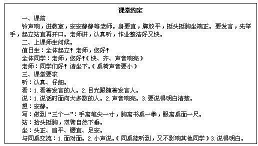 在推进“培养反思型学生的研究”课堂教学的过程中,我们研讨形成了学校特色课堂约定,对学生在课堂中的“听、说、读、写、思”作出具体要求,以培养学生良好的课堂学习习惯。附课堂约定如下: