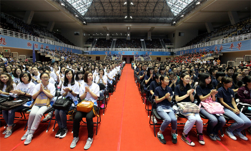9月9日,对外经济贸易大学在红天体育馆举行了2015级新生开学典礼。
