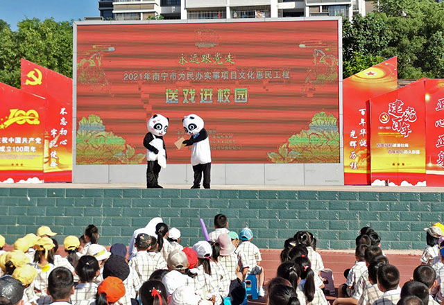 ![]() (本网讯)9月27日上午,“2021年南宁市为民办实事项目文化惠民工程——送戏进校园”演出活动走进南宁市玉洞小学。 演出节目精彩纷呈,并且都具有深刻的教育意义。人偶剧《熊出没之游泳》贯穿了“防溺水安全教育”;古筝弹奏《我的中国心》、魔术表演、红色话剧《江姐》等节目激起同学们的爱国热情;党史知识抢答让孩子们对共产党人的奋斗历史更加了解,激励奋进。最后是全体师生与演员大合唱《没有共产党就没有新中国》,歌颂伟大的共产党和祖国。 此次送戏进校园活动,既提升了孩子们的文化修养,又丰富了学生的业余生活,也为“正雅”学子们提供了丰厚的精神食粮。(南宁市玉洞小学 黄莹) |