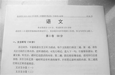北青报记者了解到,除此次期中考试,四中高一学生的两次大考(期中、期末考)也都有文言文听力题,篇目既有课内已学文章,也有课外未学的文章。考试的文段涉及叙事、描写和议论等内容,每个文段在七八十字。