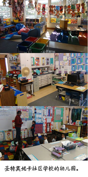 ![]() 今年2、3月,承蒙中美教育联合会邀请,我们一行4人赴美考察交流,参观了3所美国学校。我们首先参观洛杉矶的California小学,该校是当地一所普通公立小学,位于社区当中,拉丁裔占主流,兼有白人、亚裔、墨西哥裔,是3所学校中生源条件最好的一所。接着参观了圣地亚哥的Benchely-Weinberger小学,该校位于墨西哥裔居民集中居住的贫困区域,但是,言谈举止之间,校领导们却显得有些“财大气粗”。最后我们参观了洛杉矶的圣特莫尼卡社区学校,该校同样位于墨西哥裔居民集中居住的贫困区域,但是学校向加州申请了特殊的公立学校自主化办学制度,与前两所小学相较,该校的办学模式显得更加丰富、灵活。但总体而言,这三所美国小学所呈现出的风貌,让我们能够对美国教育有了一些基本的了解。 开阔的教学空间 在美国公立学校中,自1年级到12年级,班级规模通常都是30人左右,而小学阶段(1-5年级)的班级规模相对小一些,大致为25-35人.就我们参观的几所学校而言,3、4年级的人数明显少于5、6年级。美国儿童自4岁半开始有资格进入公立小学的幼儿园接受为期一年的免费幼儿园教育,幼儿园的班级规模一般比一年级更小。办学经费较充足或者社区经济状况较好的学校,可能会通过缩小班级规模、增加教师配备来提高师生比。 走进美国的学校,最大的感觉就是校园开阔。三所学校中,总人数最多的不过800人,但是没有一所学校的操场小于国内众多的知名小学。加利福尼亚州小学的操场简直就是一大片开阔的原野,校工除草时需要发动一辆除草车。 教室里大小约为中国教室的2倍,在学生人数是中国一半的情况下,生均占地面积约为中国的4倍。因为空间较大,所以这些学校的教室分区科学合理。如圣特莫尼卡社区学校的教室(见图),便有席地区、桌椅区、辅导区、电脑区、办公区和储物区6个教学区域。在席地区,学生可以席地而坐,和教师面对面开展教学活动。在桌椅区,学生桌椅分小组摆放,便于合作完成学习任务。在辅导区,有1张半圆桌、几把师生椅,便于教师辅导学习有困难的学生。在电脑区,有5台苹果电脑,学生人手一台Ipad(Benchely-Weinberger学校则是人手一台笔记本电脑),并配有打印机、复印机等相关设备。除了行政人员,一般的教师没有办公室。办公桌就设在教室内,教师备课、教学用具全放在教室内。储物区则用于存放各种教学器材、用品。 笔者想,或许一个人存在的空间场域会影响一个人的视野和人生态度,或许,正是这样的打空间促成了美国人宽广的心胸和长远的眼光。 ![]() 直面学生差异 下面一组图片来自圣特莫妮卡社区学校的幼儿园,这是一间位于贫民区的学校的教室。该校接收的学生基本上等同于中国的打工子弟,甚至有些学生的家庭条件比中国的打工子弟还不如,但在均衡的教育制度下,这所学校却闪烁着平等与博爱的光芒。 当时,参观这间教室时,笔者只是觉得惊艳,而此时此刻,当笔者再次整理 这些照片时,复杂的心情难以言表。 我们参观的3所学校,第1所基础设施最差,而恰恰是第一所学校位置和生源最好。第2所学校负责接待我们的学校领导说:在美国,一般的公立学校,费用由州政府提供,而对于一些处于贫困地区的学校,除了州政府的拨款,还可以额外享受到联邦政府的拨款,这也就意味着学生越贫困,学校办学条件越好。所以因为经费的问题,第一所学校开展教育研究活动的能力和水平都非常有限。校长送给我们的礼物是一支印有学校标记的铅笔,提供的午餐也是3所学校中最差的。 美国政府正是通过这样的政策,用经费的支持帮助落后地区的学校提高教学质量,从而弥补了贫困学生家庭教育的缺失。 美国学校并不回避学生的素质差异。以我们所到的加州为例,每一学年,州教育委员会统一发放试卷对学生进行统测。各校依据统测的成绩,将学生划分为不同的学力水平,并为学生提供不同层次的服务。如在组织小组化学习的过程中,会将不同类型的孩子分配到一组,构成异质小组。另外。对于优质生和潜能生,学校分别有专门的辅导老师对这两部分学生进行辅导。特别是对学困生,学校提供了较为周道的教育服务。 我们参观的加利福尼亚州小学,有一个由学困生组成的班级,这些学生一部分课与其他同学一起上,另一部分课程学校会配备两位老师(一位专门辅导学生学习,另一位是助教)进行辅导。这样的班级,学生人数不超过20人,该教室硬件设施更为齐全,对待残障儿童更为人性化,为其提供了较为先进的设施。如水池、洗手液等物品都会放置于较低位置,班级里空间更为宽敞,设置无障碍通道等。当我们问及学校领导,将孩子分班后,家长会不会有意见的问题时,校长觉得很奇怪。他告诉我们,家长们对于分层辅导的态度都是很积极的,并且十分感谢学校为孩子提供的特殊教育。 ![]() 教师管理和校长工作 在美国,教师是一项令人尊敬的职业,至少需要拥有本科以上的学历。学校不为新入职教师提供更多额外的帮助。这就意味着,美国教师教育的培养体系,保证了教师入职上岗前,已经具备了成为合格教师的能力。 每个教师都会参加教师工会,每一个参加工会的教师都拥有一定的权利保障。在参观的三所学校中,其中两所是规范建制小学,另外一所是具有独立办学资质的小学。在教师招聘时也分为两种情况:规范建制小学由州教育委员会聘任教师,学校